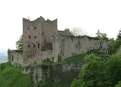 During its time as an active castle, it was besieged many times and overrun twice.[5] After at least two different demolitions (probably during 1689 by Vauban and Mélac in the Nine Years' War[6]) the castle was ruined and, in the 17th century, stones from the castle were used in the building of Gaisbach Castle by Hans Jakob Christoffel von Grimmelshausen, the author of the Baroque satire Simplicius Simplicissimus. The castle has been a preserved ruin since the 18th century and today the castle is owned by the Freiherren von Schauenburg.