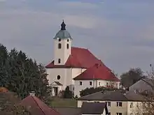 Initially, a small wooden chapel was used[2] while the present church was being built between 1786 and 1790, as was the priest's house,[2] which until 1887 also served as a school.[5] The necessary finances came partly from the Religionsfonds (the state fund established by Joseph II from the proceeds of his dissolution of monasteries), local landowners and the members of the parish itself.[6] At first the lords of Sierning exercised the right of protection (Vogtei).[6]