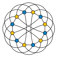 The intersection graph of the twelve lines of the double six configuration is a twelve-vertex crown graph, a bipartite graph in which each vertex is adjacent to five out of the six vertices of the opposite color.[6] The Levi graph of the double six may be obtained by replacing each edge of the crown graph by a two-edge path. The intersection graph of the entire set of 27 lines on a cubic surface is the complement of the Schläfli graph.[7]