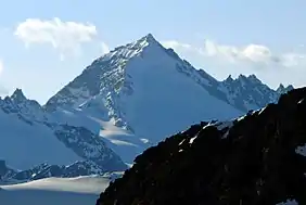 The Schlieferspitze is a mountain, 3,290 m (AA),[2] on the ridge known as the Krimmler Kamm in the Venediger Group of the Alps. The ridge lies in the northwest of the High Tauern, part of the Austrian Central Alps in the Austrian federal state of Salzburg. The summit is the highest on the Krimmler Kamm and is described in the sources as one of the most attractive peaks in the Venediger Group. From the valleys of the Krimmler Achental to the southwest and the Obersulzbachtal to the northeast it appears as an extremely dominant mountain. Long and evenly formed arêtes, about two kilometres long, run from the summit to the northwest, northeast, southeast and southwest. The mountain was first ascended on 22 August 1871 by Eduard Richter, professor of geography at the University of Graz, and Johann Stüdl, a merchant from Prague and co-founder of the German Alpine Club.
