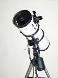 A Schmidt–Newtonian telescope or Schmidt–Newton telescope is a catadioptric telescope that combines elements from both the Schmidt camera and the Newtonian telescope. In this telescope design, a spherical primary mirror is combined with a Schmidt corrector plate, which corrects the spherical aberration and holds the secondary mirror. The resulting system has less coma and diffraction effects than a Newtonian telescope with a parabolic mirror (which is free of spherical aberration but not free of coma) and a "spider" secondary mirror support.[1] The design uses a 45° flat secondary mirror to view the image, as in a standard Newtonian telescope.