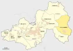 Location of Schmiedefeld am Rennsteig within Suhl | |