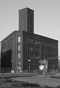 Seventeen buildings once occupied the site when the brewery reached maximum capacity in 1910 at 1,200,000 barrels a year.[3] Two of the remaining buildings demonstrate the change in architectural styles that occurred at the turn of the century in the United States. The brewery's administration building was constructed in 1886, with ornate designs of the late-Victorian era. The powerhouse, constructed in 1902, is an example of second-generation "Chicago School" architectural style, with ornamental brickwork at the columns between windows, and simplified brickwork at the window piers and the piers and spandrels.[3]
