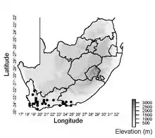 | Documented collection localities in South Africa | |
