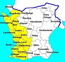 Historically, Scania formed part of the kingdom of Denmark until the signing of the Treaty of Roskilde in 1658.[7] Denmark regained control of the province (1676–1679) during the Scanian War and again briefly in 1711 during the Great Northern War. Scania has been an undisputed part of Sweden since 1720.[8][9]