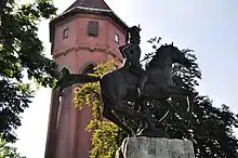 During World War II Środa was under German occupation from September 1939 to January 1945.[2] Poles were subjected to mass arrests, expulsions and massacres. The Einsatzgruppe VI entered the town after September 12, 1939.[3] A prison for Poles was established in the town.[4] On September 17, 1939, the Gestapo murdered 21 Poles from Środa in the neighbouring village of Kijewo, and on October 20, 1939, Germans carried out a public execution of 29 Poles, including teachers, merchants, engineers, lawyers, landowners, and post and bank employees, at the market square.[2][5] Leonard Cybichowski, principal of the local agricultural school, was one of Polish school principals and teachers murdered in the Dachau concentration camp.[6] In 1939, Germans expelled families of Poles who were either murdered in the massacres or deported to Nazi concentration camps as part of the Intelligenzaktion.[7] In 1940, Germans expelled the owners of shops, workshops and bigger houses, which were then handed over to German colonists as part of the Lebensraum policy.[8] Further expulsions were carried out in February 1941.[9] In 1940 the local parish church was closed down.[2]