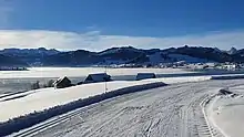 The Schwedentritt cross-country skiing trail (Loipe Schwedentritt in German) is a cross-country skiing trail in Einsiedeln in Switzerland. The trail is groomed in both skating and classic style.[1] It begins at Einsiedeln Abbey, then leads along Sihlsee and finally through the Schwantenau high moorland.[1][2] The total distance is 21.1 km (Half marathon), but can be shortened to 4, 12 or 15 km.[1][3] Due to the numerous inclines, the trail is physically demanding. Since the landscape with its bogs and birches is reminiscent of Sweden, the trail was named Schwedentritt (literally Sweden's step) in the 1970s.[4]