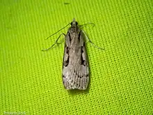 Scoparia scripta is a species of moth in the family Crambidae.[2] It is endemic in New Zealand and has been observed in the southern half of the South Island including in the Hunter Mountains and at Otira, Arthur's Pass and Mt Titiroa as well as in Deep Creek and Coronet Creek valleys near Coronet Peak. The species inhabits damp gullies. Adults are on the wing from January to March. Larvae feed on Epilobium species.
