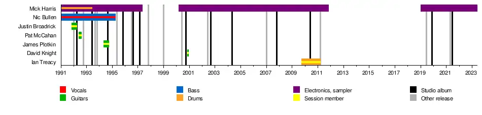 - Nic Bullen - vocals, bass, electronics (1991–1995)