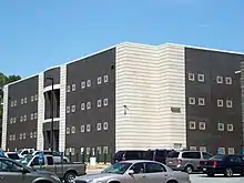 An annex was added to the jail in 1983 to alleviate crowding.[5] It was built between the jail and the courthouse, and connected the two buildings. The jail became too small again, and in 1999 the inmate capacity was capped at 214.[6] In 2004 a bond referendum was passed by county voters to expand the size of the jail. The $29.7 million expansion was opened in 2007.[7] A new entrance pavilion that provides security screening to the entire complex was added at the same time.[8] An annex that was opened on the north side of Davenport to house inmates was closed when the main jail was enlarged.[6]