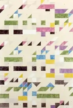The painting comprises acrylic paint on canvas. It is part of a series of paintings by Banks that depicts abstract musical scores from notable musicians. Scott Joplin depicts a piano score from Scott Joplin.[2][3] The painting was completed by Banks in 1982 and purchased by the Addison Gallery in 1983. It has been exhibited twice at the Addison Gallery, in 1983 and 1988.[1]