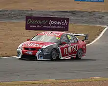 McLaughlin was signed by SBR to contest the 2010 Fujitsu V8 Supercar Series in a BF Falcon.[12] Due to his limited racing experience in cars, McLaughlin was unable to attain the required competition licence to compete in the first round of the series; he instead took part in the first two rounds of the Australian Mini Challenge and completed a single round of the Victorian Formula Ford Series.[13][5] He eventually made his debut in the second round at Queensland Raceway, becoming the youngest ever driver to race a V8 Supercar.[14] McLaughlin qualified in seventh position, just under a second behind the pole position time of championship leader Steve Owen, and finished ninth in the first race of the weekend. The finishing order of the top ten was reversed to form the grid for Race 2, meaning that McLaughlin started the second race on the front row. He overheated the clutch during the start procedure and was unable to move his car when the race started. He was hit by Owen Kelly and Ryan Hansford, with the car suffering severe damage and taking McLaughlin out of the rest of the event.[15] He went on to finish the season twelfth in the championship,[5] with a best qualifying result of second at Sydney Olympic Park and a best race result of fourth at Winton Motor Raceway. McLaughlin suffered a heavy crash at Mount Panorama, hitting the wall at the Reid Park section of the circuit during the first race of the weekend.[16]
