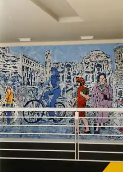 Scott Williams (born 1956) is an American artist best known for paintings made using stencils. He began working with stencils in the early 1980s, painting on walls, cars and the found paper and objects that accumulated in his studio. He has painted many murals in San Francisco and was dubbed by artist/writer Aaron Noble The Stencil Godfather of the Mission, where stencil graffiti is common. Williams has painted numerous murals in San Francisco, both indoors and out, including Armadillo's on Fillmore Street, Amoeba Records, Clarion Alley, Leather Tongue video, The Chamelleon bar, DNA Lounge, Burger Joint, Pedal Revolution, and The Lab. The preponderance of his work in the Mission and his ability to go back and forth from street to studio has led some people to see him as a forerunner of the Mission school, which coalesced 10 years after he began working in the neighborhood. Working outside the mainstream, Williams exhibited at alternative spaces throughout the 80s and 90s including Show and Tell Gallery, Altarpiece at the Offensive, Bibliomancy, the Adobe Bookstore and Southern Exposure. As curatorial awareness of Williams grew, he was invited to exhibit at Yerba Buena Center for the Arts, and the San Francisco Art Institute.