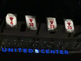 The Chicago Bulls retired Pippen's jersey number in a ceremony on December 9, 2005. The team played against the Los Angeles Lakers that night and Pippen was reunited with Phil Jackson, Michael Jordan, Dennis Rodman, and Horace Grant during the ceremony. Pippen's 33 joined Michael Jordan's 23, Bob Love's 10, and Jerry Sloan's 4 as the only numbers retired by the Bulls.[83]