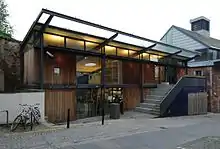 Since 1999, the library has been based at 5 Crichton's Close, just off the Canongate in Edinburgh's Old Town. The library building was designed by Malcolm Fraser Architects, and was shortlisted for Channel 4's "Building of the Year" in 2000.[5] It has been described as "a poem in glass and stone",[6] and was included in Prospect magazine's 2005 list of the 100 best modern Scottish buildings.[7]