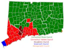 Connecticut Yankee Council serves 37 communities which covers half of New Haven county and most of Fairfield counties.