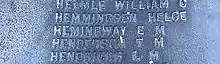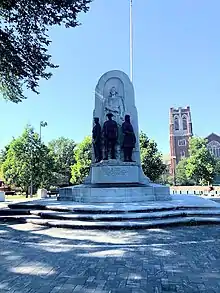 The Oak Park-River Forest War Memorial, known as Peace Triumphant, is a memorial to the veterans of World War I located at the top of the hill on the park's north end. The monument was erected in 1925 by citizens of Oak Park and neighboring River Forest, who donated the $52,573.63 needed to build the granite and bronze monument to community members who fought in the war.[11][12] The monument includes three bronze statues, representing the armed forces of land, sea and air.[12] The monument includes the names of 2,446 residents who served in World War I from Oak Park and River Forest, including Ernest Hemingway, who grew up nearby and sledded down the hill as a boy.[12] Vice President Charles G. Dawes attended the dedication, on Armistice Day, 1925.[12]