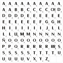 When Alfred Butts invented the game, he initially experimented with different distributions of letters.[3] A popular story claims that Butts created an elaborate chart by studying the front page of The New York Times to create his final choice of letter distributions.[4]