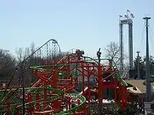 Scream at Six Flags Fiesta Texas in San Antonio, Texas opened on March 13, 1999, in the Rockville section of the park. While it first opened with two towers (Possibly one Space Shot, one Turbo Drop), a third tower opened on May 28, 1999.[1] It was the very first "combo tower" from S&S Power, combining the ride actions of both a Turbo Drop and Space Shot in one ride cycle.[2] The ride was fabricated by Intermountain Lift, Inc.[3]