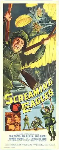 Screaming Eagles is a 1956 black-and-white World War II film directed by Charles F. Haas, released by Allied Artists, and starring Tom Tryon, Jan Merlin and, in her film debut, French Miss Universe 1954 runner-up Jacqueline Beer.