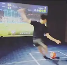 The screen soccer does not have such a burden because it confronts the designated opponent one to one. In the game mode, when you put a soccer ball on a designated mark, you will get a count of kicking the ball. If the player makes a strong effort toward the goal in the screen, the success or failure of the shoot is displayed. Soccer ball speed, success rate, score, rankings (ranking) data, such as data can be counted on the screen can be measured.[20] It is possible not only to attack but also to defend. The defender sets the goalkeeper's movements on the outside machine. Then, the opponent predicts the direction in which the ball is kicked and sets the direction so that the goalkeeper can move. The game progresses with alternating defense and offense, and the person who puts more goals in the set number of times wins. Although it is a screen-based game, you can enjoy the sporting game as if you are playing in a real stadium.[21]
