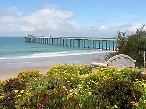 In 1912 Scripps became incorporated into the University of California and was renamed the "Scripps Institution for Biological Research."[1] Since 1916, measurements have been taken daily at its pier.[5] The name was changed to Scripps Institution of Oceanography in October 1925.[1] During the 1960s, led by Scripps Institution of Oceanography director Roger Revelle, it formed the nucleus for the creation of the University of California, San Diego on a bluff overlooking Scripps Institution.