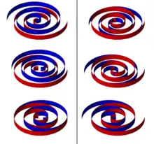 Leaks from axial gaps are prevented by the use of spiral-shaped tip seals, placed into grooves on the tips of both spirals.[13] These tip seals also help lower the friction and can be replaced when worn down. Some compressors use the pressurized discharge gas to push both scrolls together, eliminating the need for tip seals and improving sealing with use; these compressors are said to wear-in instead of wear-out,[14][15][16][17] but other parts such as the Oldham ring can still wear out.