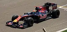 With Vettel moving to Red Bull Racing replacing the retired David Coulthard,[12] Sébastien Buemi and Sébastien Bourdais led the team's assault in the 2009 World Championship. After the previous year's success, several drivers wanted to drive for Toro Rosso, including Takuma Sato (who even did three tests with the team) and Bruno Senna. Toro Rosso unveiled their new car last of all the teams taking part in the 2009 season, on 9 March 2009.[13] Before the season started, the team's boss Franz Tost said that it would be "difficult" to do as well as they did in the 2008 season.[13] On 16 July 2009, the team announced that Sébastien Bourdais' contract was to be terminated with immediate effect due to disappointing results. On 20 July 2009, the team announced that Jaime Alguersuari would replace him as official driver for the rest of the season. Multiple WRC Champion Sébastien Loeb had been quoted in the French sports-paper L'Equipe as being interested in replacing Bourdais.[14] It had been stated that Loeb would not be available to race in F1 until after the end of the WRC season.[15] He would've been available to make his F1 début at the 2009 Abu Dhabi Grand Prix in November.[16] However, this was not to be as the FIA denied him a super licence which is required to drive in Formula One.[17] The season ended with Toro Rosso finishing in tenth and last place in the championship after being overtaken by Force India after their podium finish in Belgium. However, Toro Rosso's form picked up towards the end of the season with Sébastien Buemi scoring points in the final two races. However, Jaime Alguersuari failed to score any points in the season.