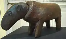 An inventory of 1768 states that there should be in all the Thirty Peoples of the Province of Paraguay at least two thousand statues in the churches, not counting other decorative objects. Another inventory, by Francisco Bruno de Zavala, made on July 8, 1778, lists 57 images in São Miguel.[45] The list compiled in 2008 by IPHAN listed 510 missionary statues in Brazil, the set being dispersed among several private collections and public institutions. Besides the Missions Museum, other images are found in some churches and museums in the Missões region,[46][47] most notably the Museu Monsenhor Estanislau Wolski, in Santo Antônio das Missões, with a rich collection of 73 miniatures, still largely forgotten by scholars;[48] the Museu Municipal Aparício Silva Rillo, in São Borja, with 35 pieces,[49] and the Cathedral of São Luiz Gonzaga, with 13 images.[50] Others are in museums and Catholic schools in the Greater Porto Alegre area, especially the Júlio de Castilhos Museum in the capital, and the Anchietano Museum of Unisinos in São Leopoldo.[51] The Museum Vincente Pallotti in Santa Maria also holds a group of statues.[52] The large number of statues has allowed many to have obscurely survived in churches and private collections in Argentina, Paraguay, Uruguay, and other countries, awaiting identification. A significant group of 13 sculptures was found in the Azores.[46][53] This exemplifies the richness of the original collection and how much has been dispersed or lost over the years.
