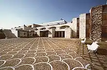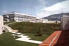 The design of the ‘Reiss Romoli’ school was carried out by the Antonelli-Greco Studio in Rome, who built a campus inspired to Anglo-Saxon colleges. The structure is characterized by stone walls and made with special anti-seismic criteria.[8] It covers 170 thousand square meters with five tennis courts, one soccer field, a multipurpose facility, a fitness trail, swimming pool and two gyms.[9]
