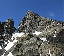 The first ascent of the summit was made July 3, 1934, by David Brower and Hervey Voge.[1]