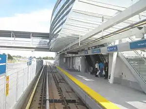 The Vancouver International Airport Authority contributed up to $300 million toward the airport branch of the Canada Line, which includes Sea Island Centre.[2] This station, along with Templeton, was built at-grade to allow for the future construction of an elevated aircraft taxiway over the Canada Line guideway.[3]