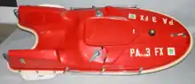 The hull for the Sea/Aqua Skimmer was a molded fiberglass, produced in red, yellow, and aqua. Boats customized for Navy usage were painted flat black with mounting for weapons. The hull was fitted with a foam floatation system to make it unsinkable, and internally compartmentalized for engine housing, fuel tank, and battery mountings. The Aqua Skimmer hull was produced from 1959-1962 in Kansas City Missouri and was an early pioneer in the development of Fiberglass in the boating industry.[17][18][19] Hull design for the Aqua Dart was modified and incorporated into the 1963 patent by Aqua Dart, INC.