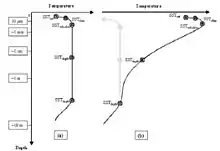 Temperature profile of the surface layer of the ocean (a) at night and (b) during the day