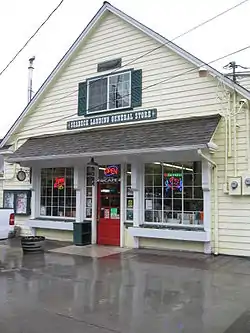 Seabeck was founded in 1856 by Marshall Blinn[8] and William Adams,[9] doing business as the Washington Mill Company.[10] Their lumber was in such demand they built a second mill, then a shipyard to build boats to haul the lumber to California, which had high demand due to the California Gold Rush. Eventually, along with four saloons, the town had two general stores and two hotels. In 1876, there were over 400 people living in Seabeck. After decades of success, in the 1880s the demand had eased, and most of the easily accessible trees had been harvested. In August 1886 a spark from the ship Retriever started a fire that consumed both mills, along with other buildings. Rumors flew that the mills would not be re-built, so most residents moved to other towns with mills, notably Port Hadlock, turning Seabeck into a virtual ghost town. In 1914, the old townsite was purchased by Laurence Colman and revived as a retreat for Puget Sound's YMCA & YWCA clubs, and eventually all non-profit groups. Several surviving buildings from the 1850s-60s were refurbished and today form the campus of the Seabeck Conference Center.[11]