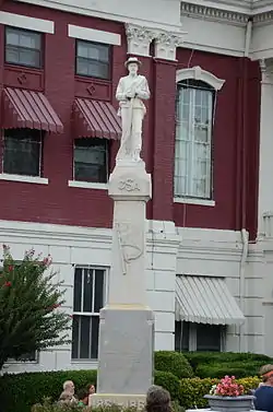 The Searcy Confederate Monument stands on the grounds of the White County Courthouse, near the corner of West Arch Avenue and Spring Streets, in Searcy, Arkansas. It is a marble statue, depicting a Confederate Army soldier, standing at rest with his rifle resting on the ground. The statue is about 6 feet (1.8 m) in height, and is mounted on a granite base that is 16 feet (4.9 m) tall and 6 feet (1.8 m) square. The base is inscribed in commemoration of White County's soldiers who served in the Confederate Army. The statue was placed in 1917; it was funded through a public fund-raising campaign.[2]
