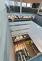 A major section of the building is the "Books Spiral", which is designed to display the library's nonfiction collection without breaking up the Dewey Decimal System classification onto different floors or sections. The collection occupies the sixth, seventh, eighth, and ninth stories on a continuous series of shelves with a maximum slope of 2 degrees.[19] This allows patrons to peruse the entire collection without using stairs or traveling to a different part of the building. The eighth level also includes music practice rooms, while the ninth level has a genealogy collection and map room. The tenth level is divided between the Seattle Room, which contains local history collections, and the Betty Jane Narver Reading Room with 400 seats. It also includes the highest viewpoints in the building.[19]
