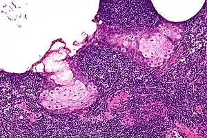 | High magnification micrograph of a sebaceous lymphadenoma. H&E stain. | |