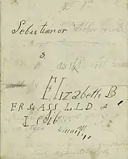 "Sebastian, or, Virtue Rewarded" is the name of an unpublished poem written around 1815 by the 9-year-old Elizabeth Barrett, later famous as Elizabeth Barrett Browning. The autographed manuscript of the poem is held in the Henry W. and Albert A. Berg Collection of English and American Literature in the New York Public Library. Note that the ambitious young Elizabeth signs herself F. R. S. (Fellow of the Royal Society) on the cover shown right.