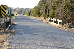 The Sebastian County Road 4G Bridge was built as part of this effort. The bridge was likely designed by an engineer with the Arkansas State Highway Commission. It was built in 1940 with the WPA funding and carries an historical association with the World War II era and open masonry substructure bridges. At the time of its listing, it was considered "relatively intact" and its condition "retain[ed] sufficient integrity to remain associated with its historic period." It was eligible under Criterion C, the distinctive characteristics of design/engineering/construction.[3]