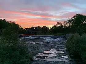 The Second Falls are the second of four waterfalls in Yarmouth, Maine, United States. They are located on the Royal River, approximately 1.35 miles (2.17 km) from its mouth with inner Casco Bay at Yarmouth Harbor, and approximately 0.35 miles (0.56 km) upstream of the First Falls. The river appealed to settlers because its 45-foot rise in close proximity to navigable water each provided potential waterpower sites. As such, each of the four falls was used to power 57 mills between 1674 and the mid-20th century.[1]