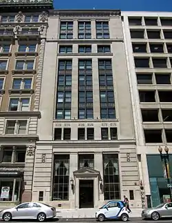 The building is an example of the flattened neoclassicism that was popular in the 1920s.[2] The exterior of the building is faced with limestone and features bronze infills.