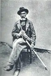 They encountered great difficulty on the ridge, Gorret wrote "this part occupied the most time, and gave us the greatest trouble." At length they arrived at a fault in the rocks which formed a roughly horizontal gallery. They crept along this in the direction of a ridge that descended towards the north-west, or thereabouts, and when close to the ridge, found that they could not climb on to it; but they perceived that, by descending a gully with perpendicular sides, they could reach the ridge at a lower point. The bold Amé Gorret was the heaviest and the strongest of the four, and he was sacrificed for the success of the expedition. He and Meynet remained behind, and lowered the others, one by one, into the gully, "and as for me," wrote Gorret, "in order not to be overcome by sleep, I pointed out to Meynet the beauty of the mountains and of the meadows in the valley." Carrel and Bich clambered up the other side, attained the ridge descending towards the northwest, shortly afterwards gained an easy route and reached the southern end of the summit-ridge. Carrel and Bich only waited long enough to plant a flag by the side of the cairn that Whymper had built three days previously, then descended at once, rejoined the others.[3][4]