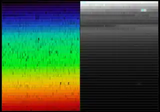 The second solar spectrum is an electromagnetic spectrum of the Sun that shows the degree of linear polarization. The term was coined by V. V. Ivanov in 1991. The polarization is at a maximum close to the limb (edge) of the Sun, thus the best place to observe such a spectrum is from just inside the limb.[1] It is also possible to get polarized light from outside the limb, but since this is much dimmer compared to the disk of the Sun, it is very easily polluted by scattered light.