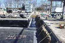United States Environmental Protection Agency (EPA) Spill Prevention, Control, and Countermeasure (SPCC) guidelines require that facilities that store large quantities of petroleum (products) must have a plan in place to contain a spill.[2] The purpose of the SPCC rule is to establish requirements for facilities to prevent a discharge of oil into navigable waters or adjoining shorelines. Within the electric utility industry, oil-filled transformers are often in need of secondary containment. Outdated secondary containment techniques such as concrete catch-basins are quickly losing ground to solutions that offer more cost-effective cleanup in case of a spill or leak. One example of a more cost-effective method involves placing a geotextile boom filled with oil solidifying polymers around a transformer. These geotextile barriers allow for flow of water, but completely solidify oil in the event of a leak and effectively seal the spill. Many electrical utility companies are switching to this method because it saves them significant amounts of money when a spill occurs, because there is no need to employ vac-trucks afterwards to clean up a spill inside a catch-basin.