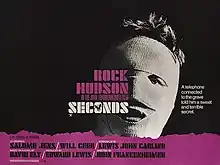 Seconds is a 1966 American psychological horror[3] science fiction film directed by John Frankenheimer and starring Rock Hudson, Salome Jens, John Randolph, and Will Geer.[4] The film tells the story of a middle-aged New York banker who, disillusioned with his life, contacts an agency known as "The Company" which specializes in providing "rebirths" under new identities and appearances altered by plastic surgery. The screenplay by Lewis John Carlino was based on the 1963 novel of the same title by David Ely.