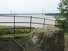 ![]() The stone marking the southern end of the Offa's Dyke Path at Sedbury, with the Severn Bridge in the background | |