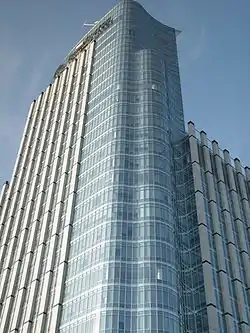 Sede do BankBoston (formerly Edifício Itaú Bank, at Itaú Fidelité Marginal Pinheiros) is a 35-story skyscraper in São Paulo, Brazil. The structure is a great office skyscraper located in Brooklin, near the Marginal Pinheiros, São Paulo, Brazil. Inaugurated in 2002, it is 145 meters in height and has 35 floors, making it one of the largest in the country and one of the more modern high-rises in Latin America. In 2006, the building was sold to Banco Itaú, prior to which time BankBoston company had merged with Fleet Bank, and ceased to exist as a separate entity. Today, some people call it an Edifício Itaú Bank.
