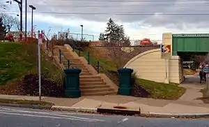 Sedgwick station is a SEPTA Regional Rail station at 253 East Mount Pleasant Avenue between Sprague and Devon Streets in Philadelphia, Pennsylvania. The old station building was built in 1882 with Furness & Evans as the architect, according to the Philadelphia Architects and Buildings project but was damaged in an arson fire around 1980 and demolished. The current station facility consists of low level platforms with open shelters. A walkway under the tracks was sealed off due to criminal activity.