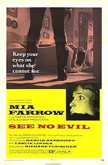 See No Evil (released in the United Kingdom as Blind Terror) is a 1971 British-American psychological horror-thriller film directed by Richard Fleischer and starring Mia Farrow as a recently-blinded woman who is stalked by a psychopath while staying at her family's rural estate.